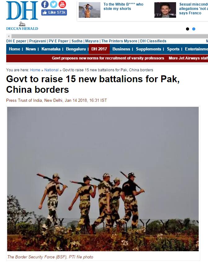 据报道,印度联邦内政部一名高级官员称,政府正“积极考虑”在印度边境安全部队增设6个军营,同时在印藏边界警察部队增设9个军营。每个军营内包含1000名官兵。