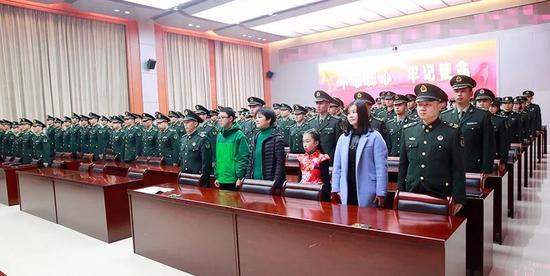 下午3时整,晋升军衔仪式在庄严的国歌声中拉开帷幕。省军区办公室机关干部和直属队官兵整齐列队、精神饱满、姿态昂扬,值得一提的是,现场还专门请来了新晋衔士官的家人共同见证这一荣耀时刻。