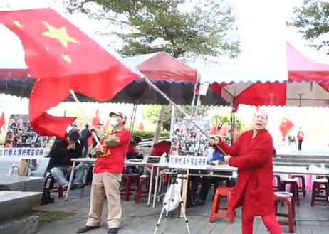 “中华爱国同心会”中午在民进党中央党部前不断挥舞五星红旗抗议。(图片来源:视频截图)