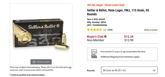 在美国,售卖9毫米子弹的厂家很多,因此市面9毫米子弹每发子弹售价仅为0.25美元(约合1.6人民币)