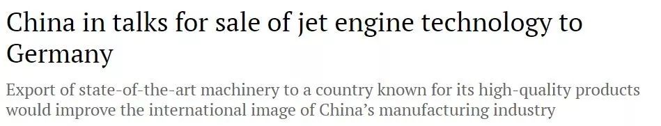 美媒称,中国的工程技术现已十分发达,德国喷气发动机很快就能利用中国技术获得重大发展。中国的官员已经开始谈判,准备向德国出售尖端的航空航天技术和制造设备,用于生产高性能喷气发动机。
