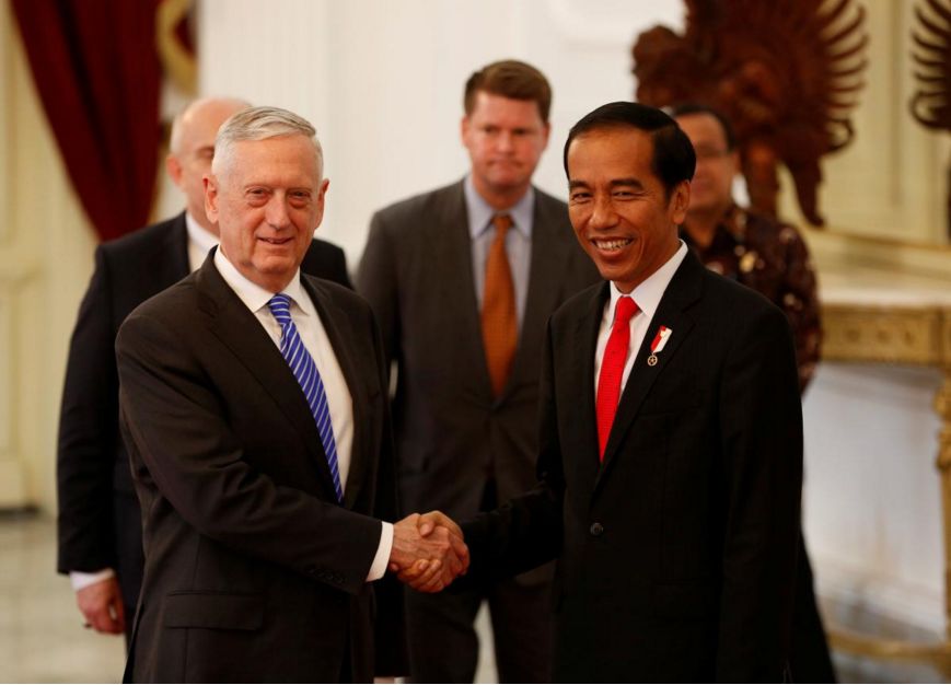外媒称,美国国防部长马蒂斯说,特朗普政府希望帮助印尼在亚太海上安全领域扮演主要角色。
