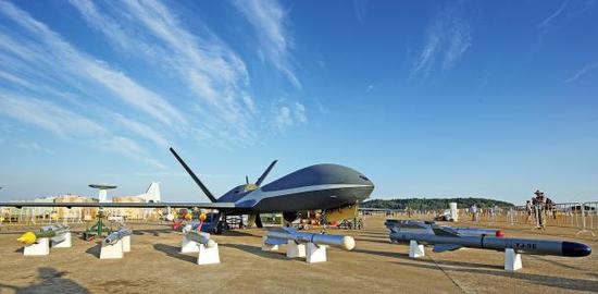 据介绍,“云影”无人机机长9.05米,翼展17.8米,正常起飞重量3吨。该机具有优异的气动特性,采用小后掠角大展弦比下单翼、V型尾翼、背负式S弯进气道。作为具有国际先进水平的高端察打一体无人机,“云影”集合了无人机领域最先进的技术,在国内无人机行列中首屈一指。其飞行高度、速度及打击、侦察距离等性能远超世界大多数同类型产品,能够高速高效安全地执行中等烈度军事任务。