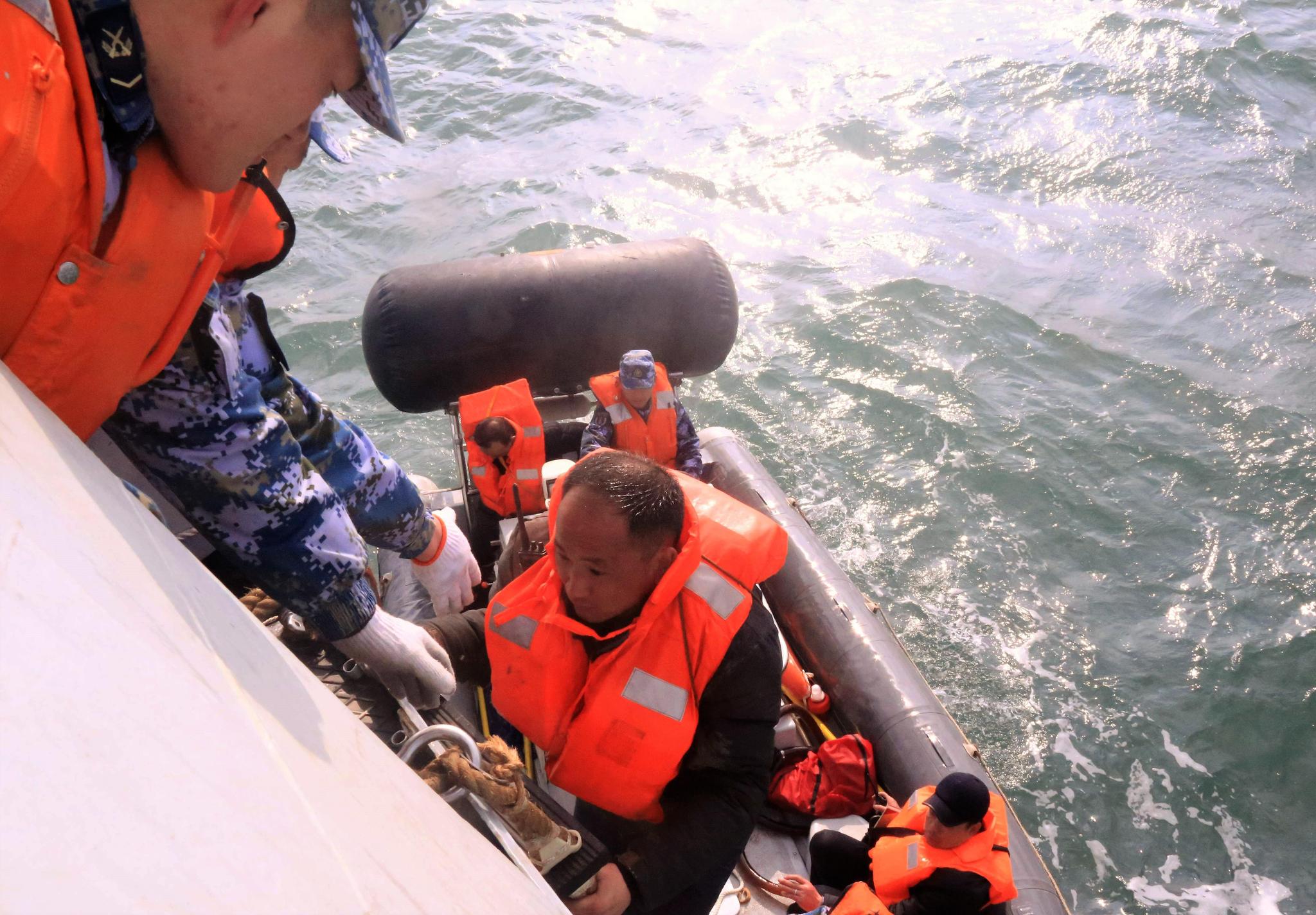 15时30分,海巡0611船抵达事发海域,并负责现场警戒。蚌埠舰搭载失事货船船员开始返航。18时50分,蚌埠舰顺利靠港,并将船员移交地方相关部门。(图片由海军东海舰队提供)