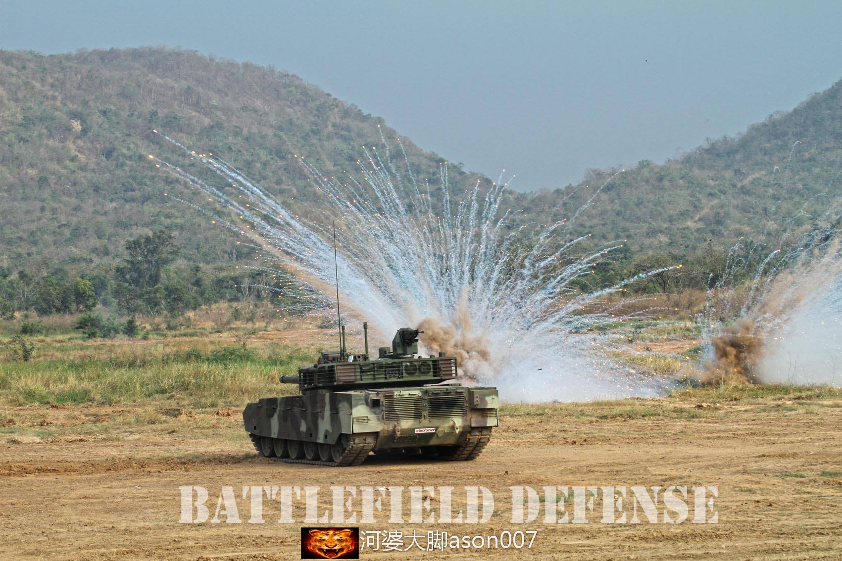 这是泰国军方公开展示装备的中国造VT-4型主战坦克,进行车载烟雾榴弹发射。