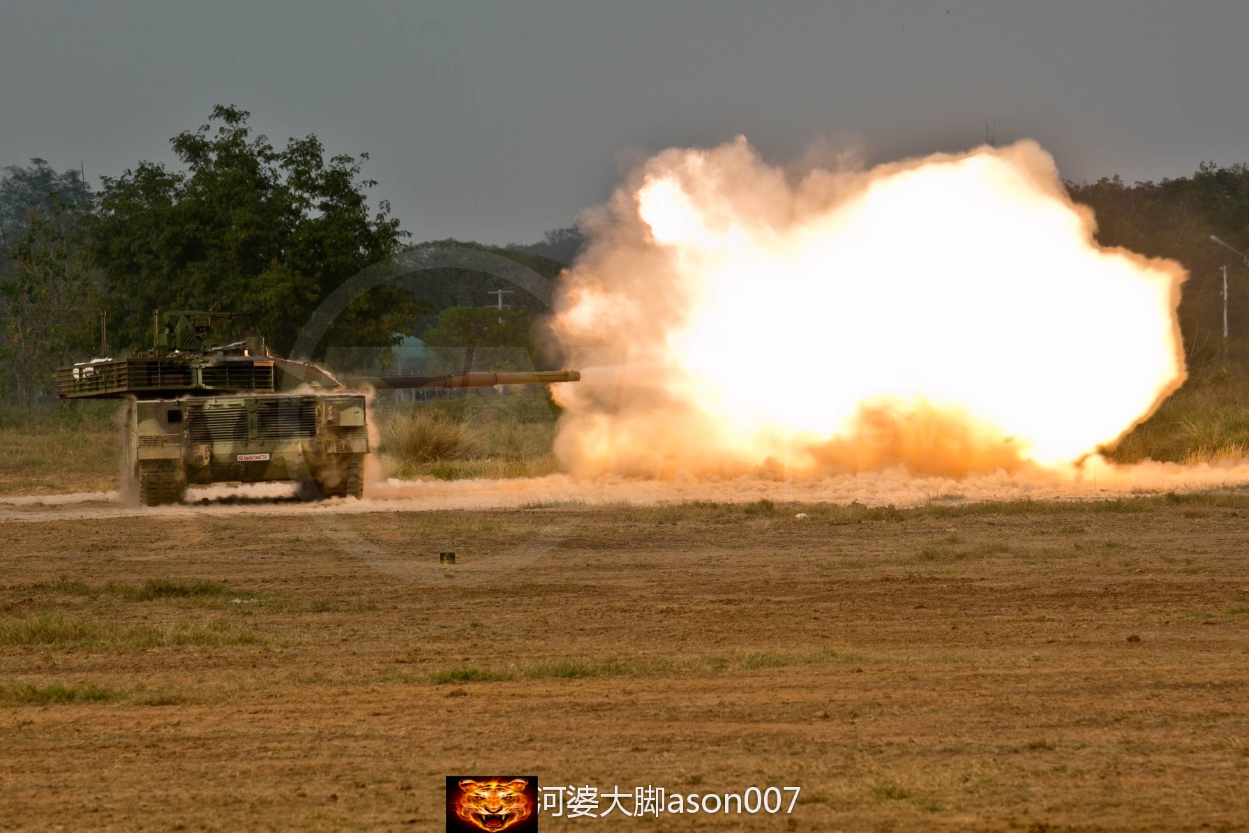 这是泰国军方公开展示装备的中国造VT-4型主战坦克,进行主炮横向火力展示。