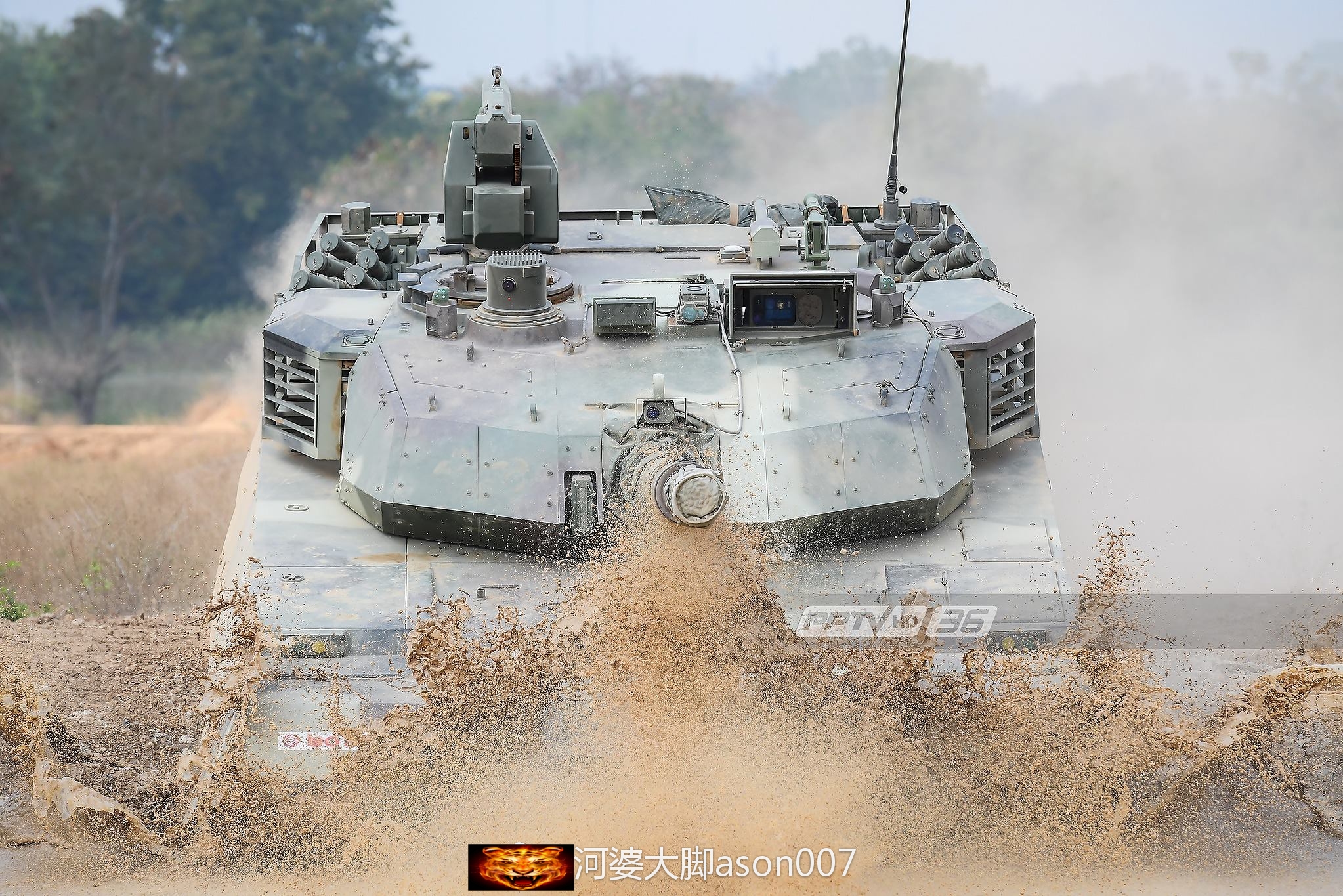 这是泰国军方公开展示装备的中国造VT-4型主战坦克,炮塔横向警戒的姿态。