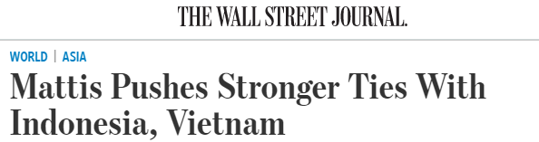 美国国防部长马蒂斯当日推动与地处战略位置的印度尼西亚建立更广泛的安全关系。