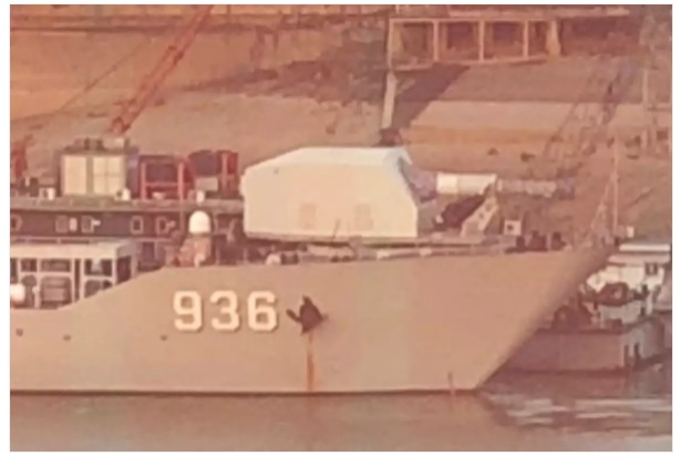 目前正在网上流传的照片显示,人民解放军海军072Ⅲ型登陆舰海洋山号(舷号936),正停在武昌造船厂内,在它的船首部分安装了一个新的大型炮塔。炮塔的安装看起来是全封闭的,并且具有大口径的炮管。文章称,相同级别的其他舰艇在同样位置只安装了一门明显要小得多的双发37毫米舰炮。