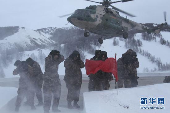 红山嘴边防连位于阿尔泰山深处的河谷内,每年10月到来年5月大雪封山,素有“雪海孤岛”之称。封山期间,陆路交通完全中断,给养物资只能靠直升机运送。春节前夕,阿勒泰军分区利用官兵换防时机,借助直升机将过年物资送达哨所,把温暖送到官兵身边。