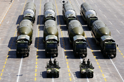 资料图片:2015年9月3日,中国人民抗日战争暨世界反法西斯战争胜利70周年纪念大会在北京隆重举行。这是核导弹第二方队通过天安门广场。新华社记者 费茂华 摄