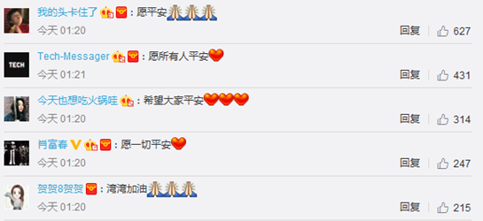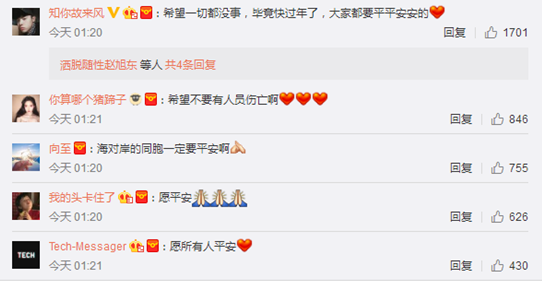 在大陆热搜第一的央视微博下,有大批网友在凌晨时分送上暖心评论,为台湾祈福、加油,期盼“海对岸的同胞一定要平安”。