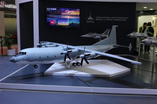 图为新加坡航展上中航技展台上亮相的Y-9E运输机模型