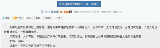 军事:大陆网友为花莲地震祈福 台湾同胞点赞称满满的爱