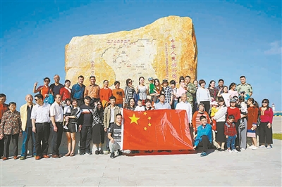 部分上岛军属在三沙设市纪念碑前合影留念。屈成刚 摄