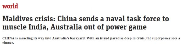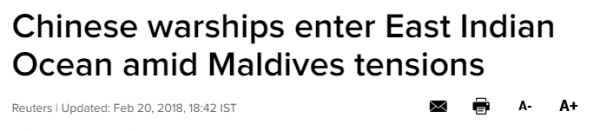 包括《今日印度》、《印度教徒报》、《印度时报》在内的媒体言之凿凿地论断:中国军舰意在掌控马尔代夫并威慑印度。