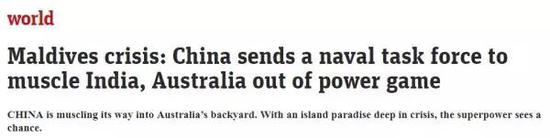 澳大利亚新闻网的报道标题则是这样的:马尔代夫闹危机,中国派了支军舰编队向印度秀肌肉,澳大利亚出局……