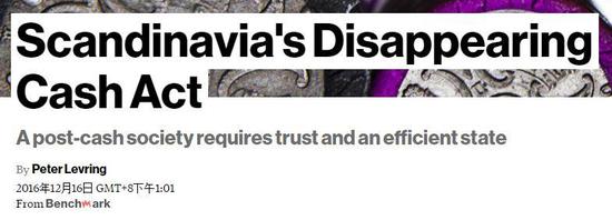 ▲在斯堪的纳维亚半岛,现金支付正在消失 (via Bloomberg)