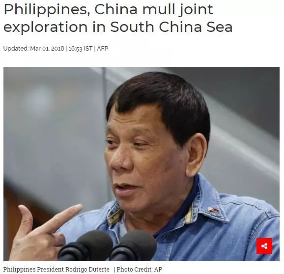 法媒称,菲律宾3月1日表示,它正与一家中国国企商讨共同勘探开采南海能源资源的事宜。菲律宾总统杜特尔特称,这份拟议中的协议的内容将类似于“共同拥有”存在争议的地区。