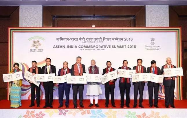 ▲1月25日,东盟-印度建立对话伙伴关系纪念峰会在新德里举行。