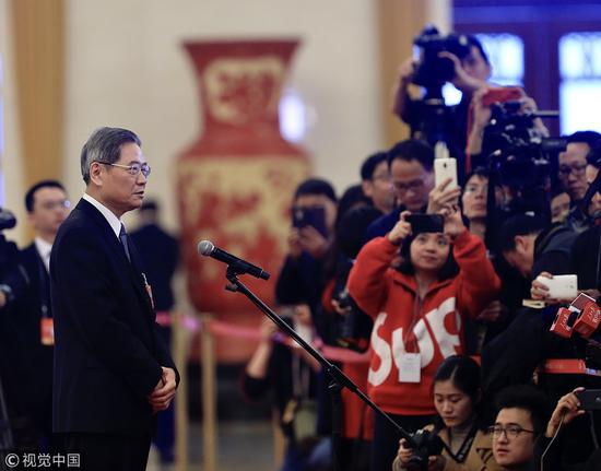 2018年3月5日,北京,2018年两会第二场“部长通道”开启。国务院台湾事务办公室主任张志军。(图源:视觉中国)