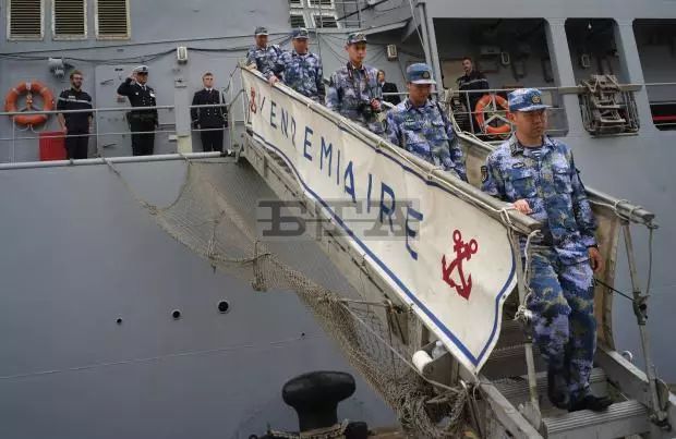 ▲驻港部队从法国护卫舰“葡月”号上走下来。(保加利亚新闻通讯社)