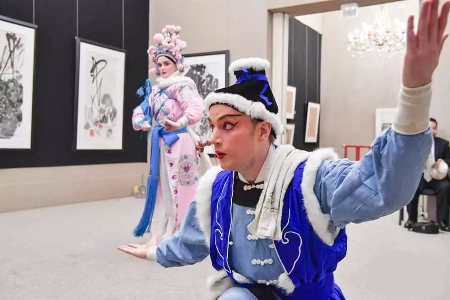 ▲瑞典演员蒂莫西·皮洛蒂(前)在第七届巴黎传统中国戏曲节上表演昆曲。