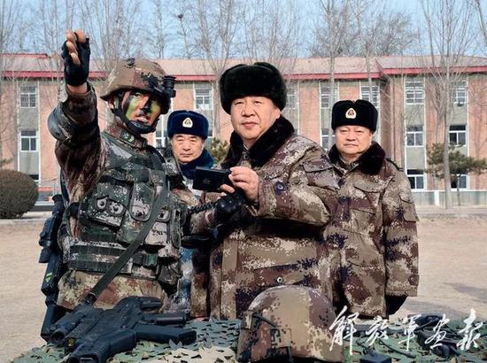 2018年1月3日,习主席视察中部战区陆军某师。这是习主席询问数字化单兵作战系统情况。