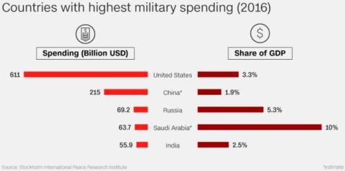当然了,CNN发这个图的主要目的肯定不是为中国“辩护”。其实这只是这家媒体和他们如今的“主要敌人”——特朗普作对而已。因为特朗普最近正在搞美国大幅度提高军费嘛。(敌人支持的我们就要反对……)