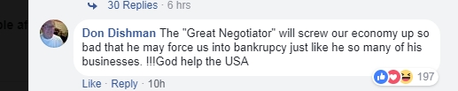 此举一出,引发海内外网友的热议,不少美国网友在推特和脸谱上对总统特朗普的这一行为表示不满,认为这样做太过于冒险,将直接伤害到美国人民的生活水平。