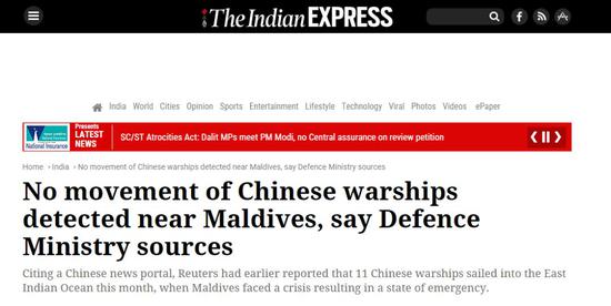 因为早在今年3月初,当其他西方媒体和印度媒体都在炒作所谓的中国出兵马尔代夫、威胁印度地区利益的话题时,印度国防部就已经澄清说中国海军并没有出现在马尔代夫附近海域。