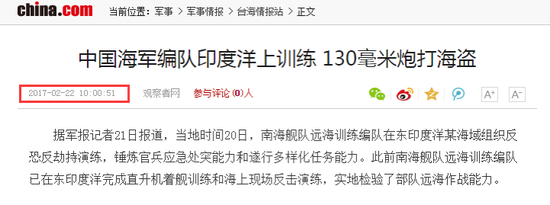 而且公开资料也显示,2017年2月同期,中国海军也曾前往东印度洋进行反恐反劫持演练。
