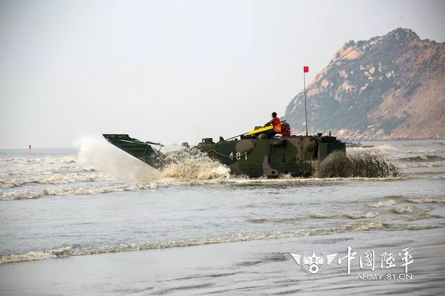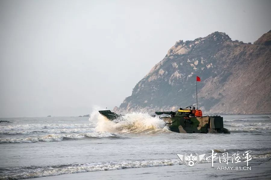 军事:解放军第74集团军在南海展开两栖装甲车海训(图)