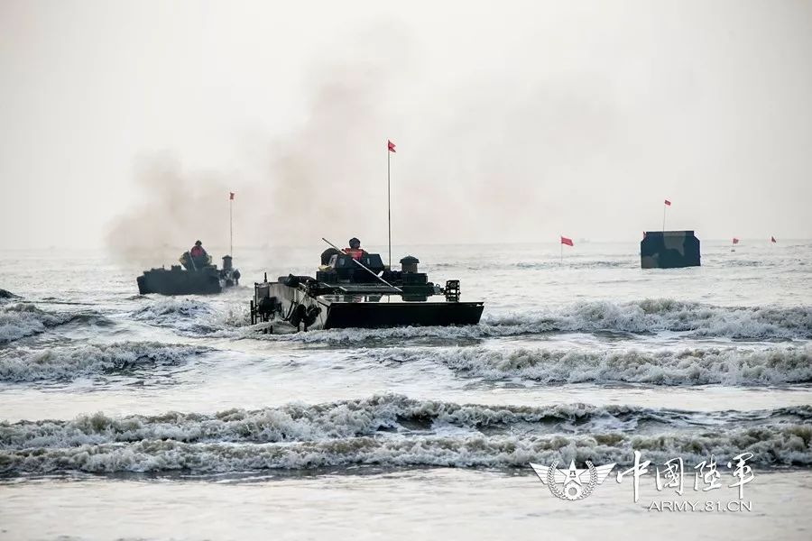 3月27日,陆军第74集团军某旅在南海某海域展开两栖装甲车海上驾驶训练,充分利用复杂多变的气象、海况等环境,组织两栖装甲车进行海上基础驾驶、通过限制路、泛水编波等多个课目的训练。