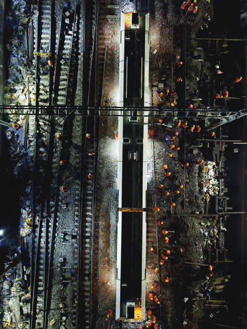 数十台施工机器同时运转,1500余名工人不眠不休,一场铁路站大改造奇迹般完成了!现场的拍摄画面,更是犹如电影大片般震撼: