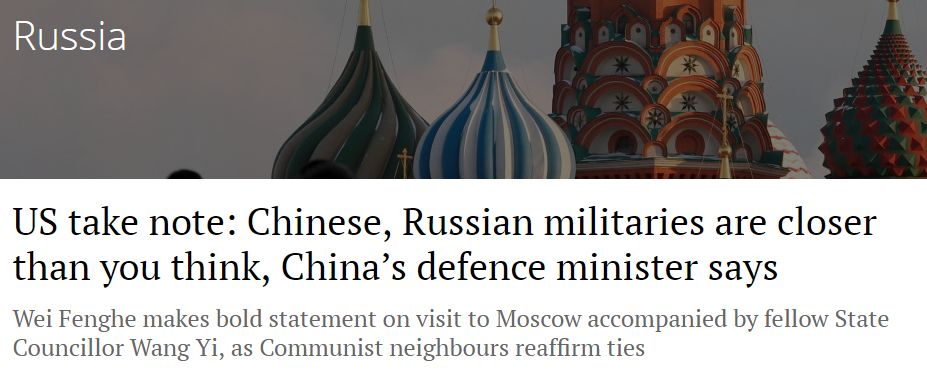▲香港《南华早报》文章关注魏凤和访问俄罗斯,称中俄军方关系密切。