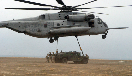 正在吊装悍马的美军海军陆战队CH-53E,随着我海军陆战队职能在向美海军陆战队靠拢,未来我军可能会组建类似于美国海军陆战队一样的空中突击部队