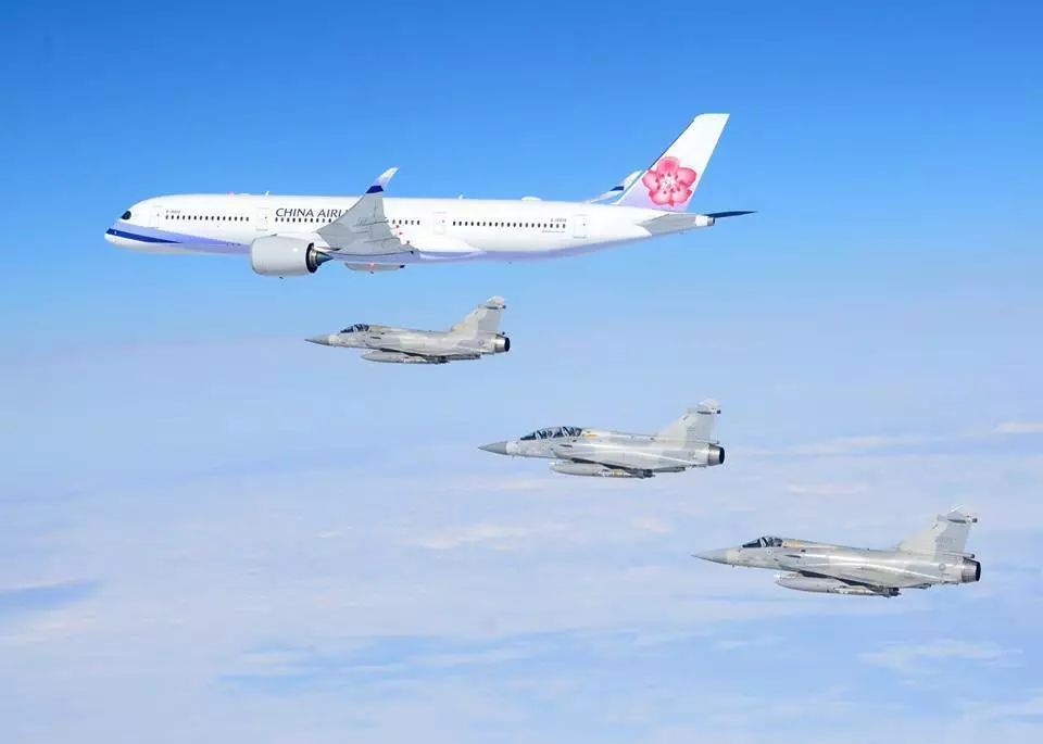 图为台空军司令部发布的幻影2000战机伴飞蔡英文专机。(来源:联合新闻网)