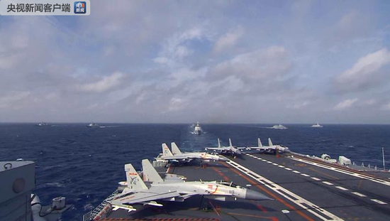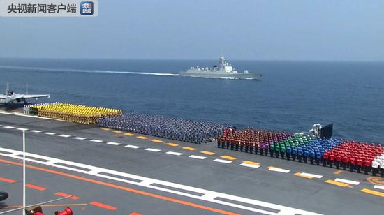 4月12日,编队全体官兵在南海海域接受习主席检阅并现场聆听习主席重要讲话,军心士气和训练热情高涨。阅兵后编队迅即出航,出巴士、奔西太、过宫古、进东海,按照远近海衔接、大范围机动、全程对抗检验的思路,先后开展突破潜艇威胁区、远海制海制空作战和舰载战斗机复杂海况、陌生海空域战术对抗等训练,并同步带动各战区海军水面舰艇、潜艇、航空兵和岸导部队参训,锻炼提升了编队体系作战能力。