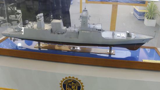 [观察者网综合报道]印度在考虑扩充他们目前已经有些落后的水面舰队,印度海军造船厂——马扎贡船坞造船厂有限公司(MDSL)近日在2018年防展上公布了一艘P17A护卫舰的模型。他们计划要建造4艘P17-A护卫舰以扩充自己的水面舰队。