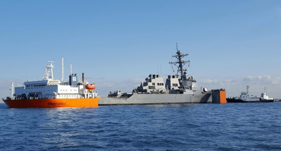 后来,这群水兵确实获得了梦寐以求的放假机会 图为撞船事故发生后备运输回国的菲茨杰拉德号(DDG-62)