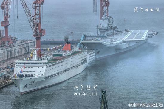 军事:中国国产航母试航在即 89号保障船已悬挂信号旗(图)