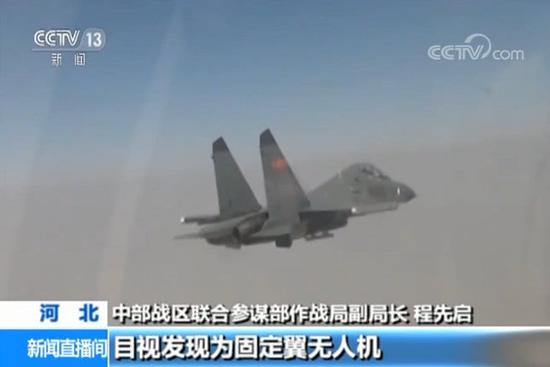 中部战区联合参谋部作战局副局长程先启:我们的雷达部队,首先在唐山市正东25公里处发现了一批不明空情,战区联指中心命令2架战斗机升空查证,空中飞行员目视发现为固定翼无人机。同时,派出地面部队赴事发地域,协助地方公安部门进行处置。