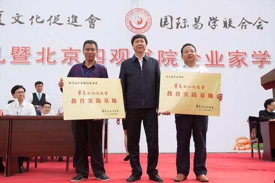 然后,李乾元上将和饶洪桥少将先后为沙土镇授予了“华夏文化传承之乡”称号和沙土镇“红色文化教育基地”称号的牌,沙土三化同步统筹发展改革试验区党工委书记、沙土镇党委书记詹世顺同志接牌;赵登平将军、孙晶教授分别作讲话并为沙土镇获得“北京大学中国战略研究中心学术研究基地”称号和沙土镇“易学传承之乡”称号授牌,试验区党工委副书记、管委会副主任、镇党委副书记、镇长赵应梅同志接牌,同时为沙土初级中学和金沙县第五中学分别授予“北京大学中国战略研究中心学术教育基地”称号;华夏文化促进会顾问、贵州省社科联书记包御琨同志还为上述两校获得“华夏文化教育实践基地”称号授牌,两校校长分别接牌。