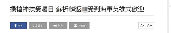除了台海军给予其他“英雄式的欢迎”欢迎外,不少台媒也纷纷发文称赞苏祈麟。有的称赞其耍花枪技术“操枪神技”,甚至有绿媒直接称其为“台湾之光”。