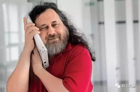 自由软件之父理查德·斯托曼和龙芯笔记本,该龙芯笔记本后来在阿根廷被盗。