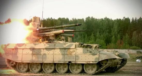 ▲BMPT坦克火力支援战车试射反坦克导弹。