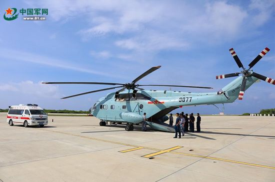 军事:解放军出动直升机赴西沙海域抢救重病渔民(图)
