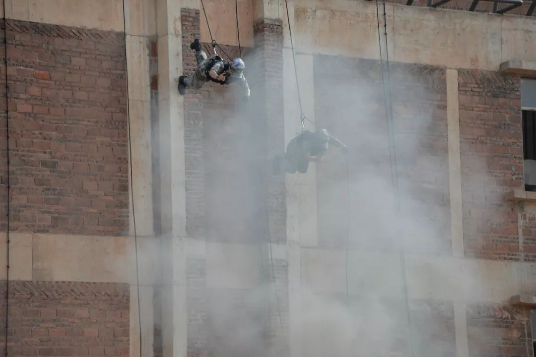 而在观看反恐综合战术演练之前,特种队员们又为大家展示了多种攀爬高楼以及从楼顶快速垂降的方法,身法极其潇洒,但如果谁以为这些只是表演性质的“耍酷”“花架子”那就大错特错了。随即反恐综合战术演练开始,特种队员施展出矫健身姿腾转挪移,以娴熟的战术协同动作从多角度对大楼内“恐怖分子”展开立体攻击,敌人瞬间被击毙或被制服。