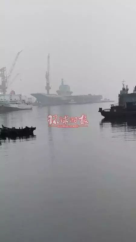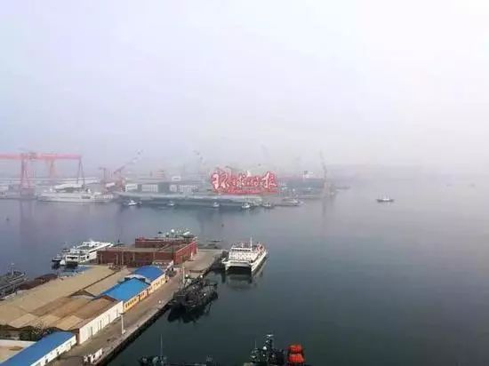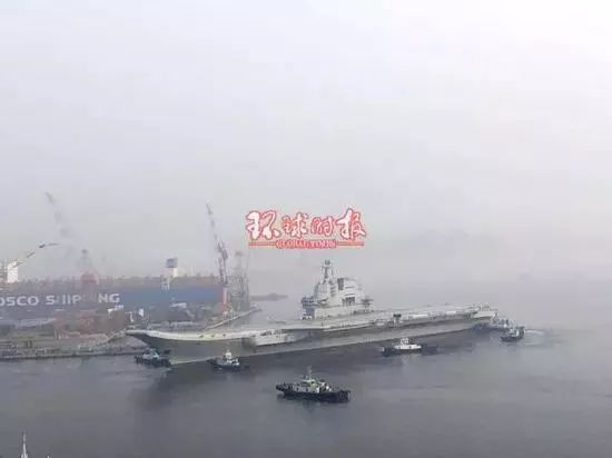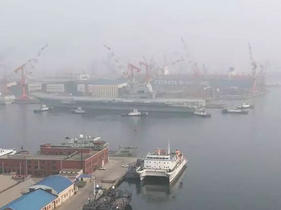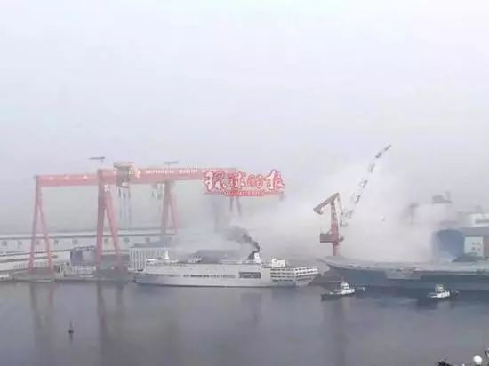 6时40分,在鞭炮声中,拖轮开始拖拽国产航母离开泊位。